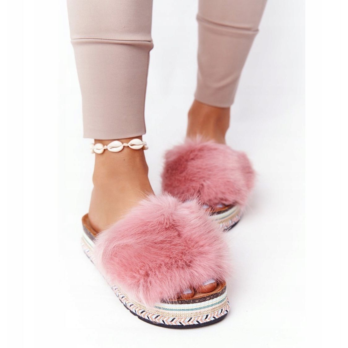 Detalles: PS1 Pantuflas con plataforma Adventure rosa con pelo multicolor