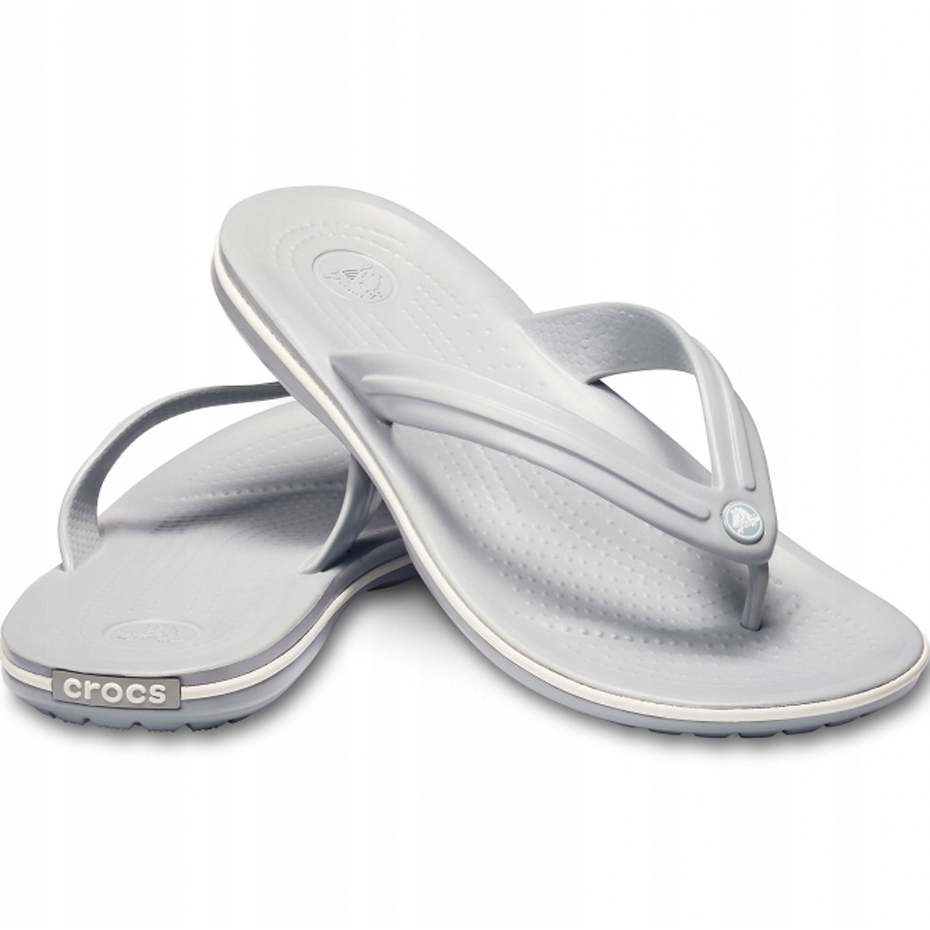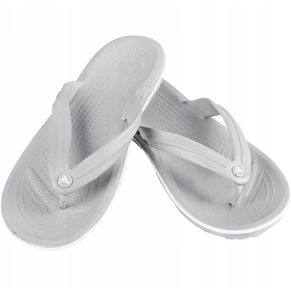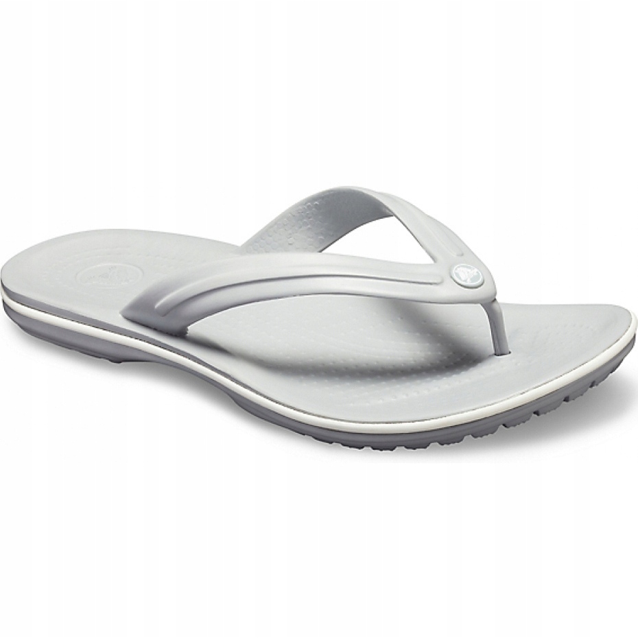 Crocs Crocband Flip gris claro blanco 11033 00J Pantuflas Crocs gris claro. La tela Croslite se siente increíble cuando se usa. Además, las inserciones de la plantilla masajean el pie y estimulan la circulación sanguínea. La correa de la suela en la parte media del pie aporta un estilo deportivo. Los zapatos se convertirán rápidamente en la moda de verano.