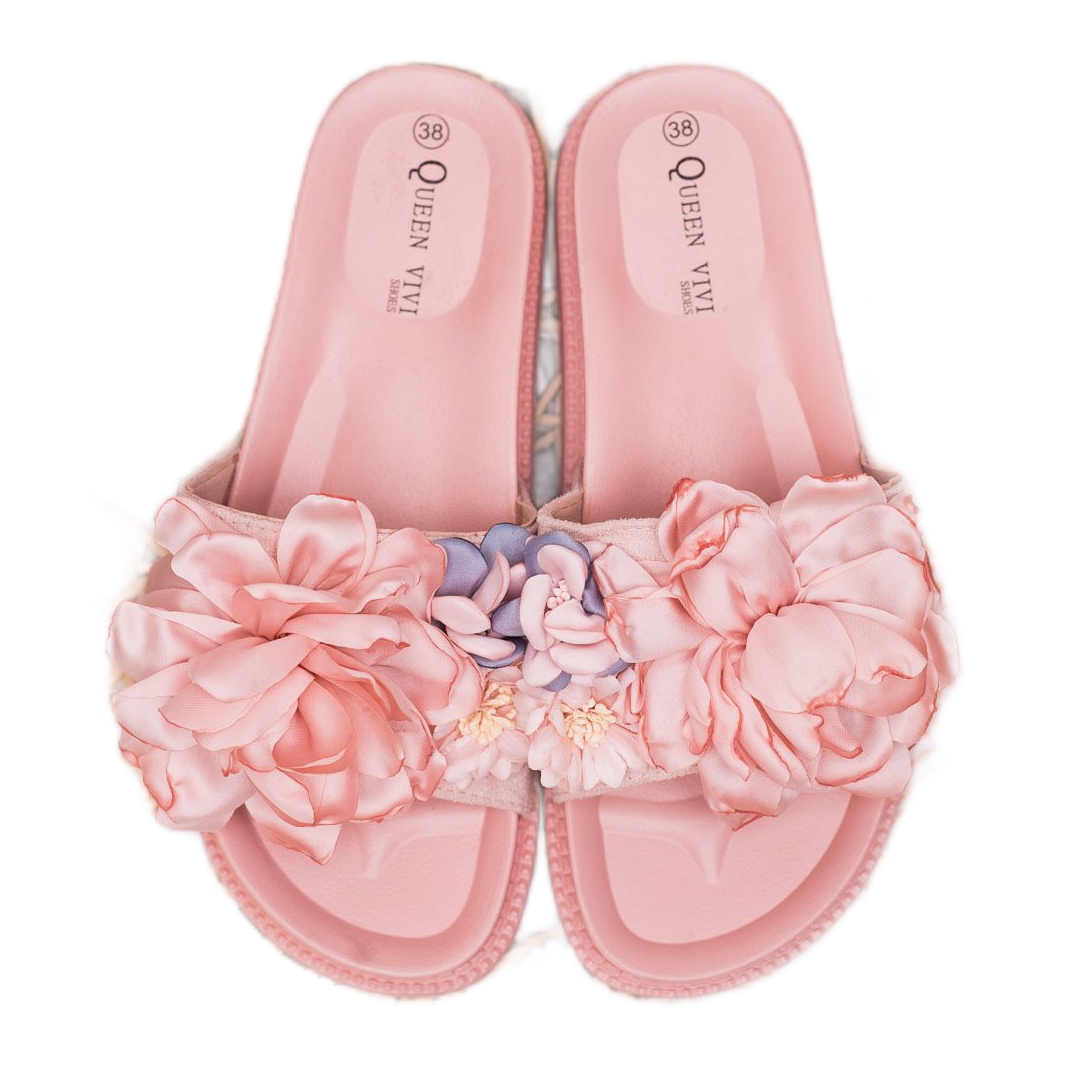 Detalles: Queen Vivi Pantuflas de Ante con Flores rosado