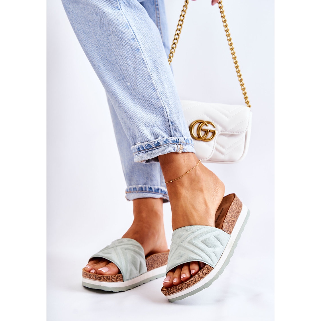 PG1 PG1 Pantuflas de gamuza para mujer en una plataforma verde masiva de Heritta