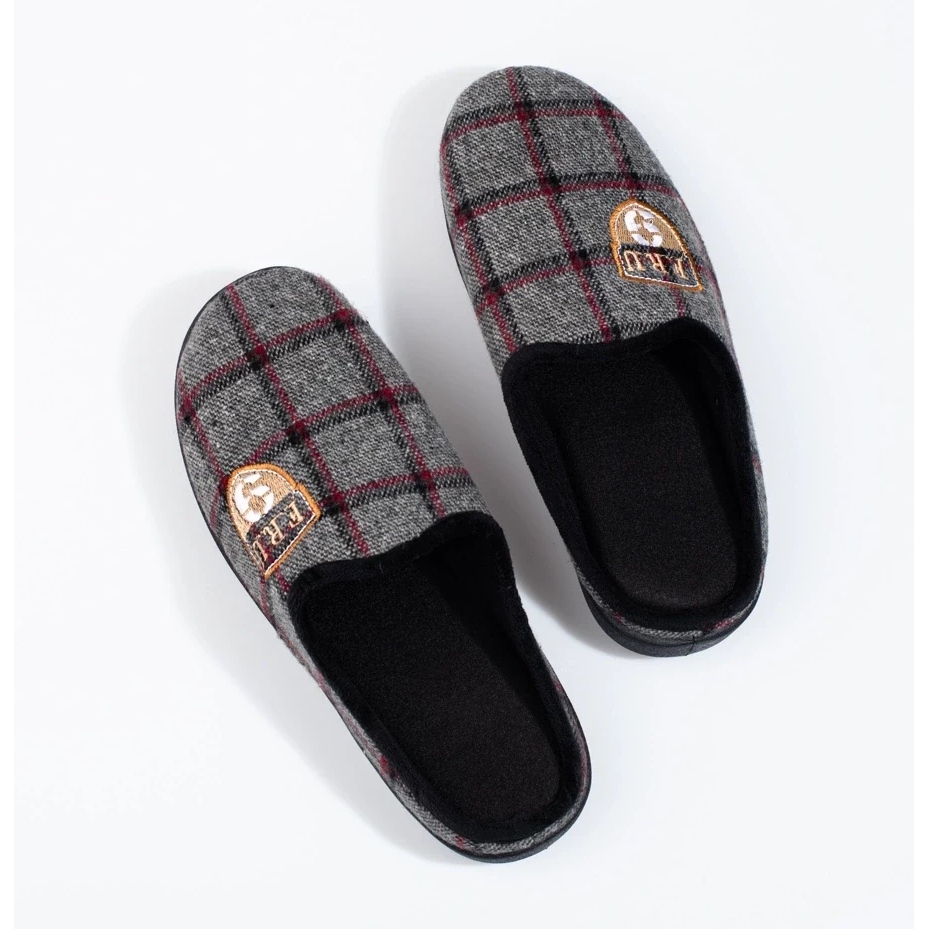 SHELOVET Pantuflas de hombre Shelovet de cuadros grises