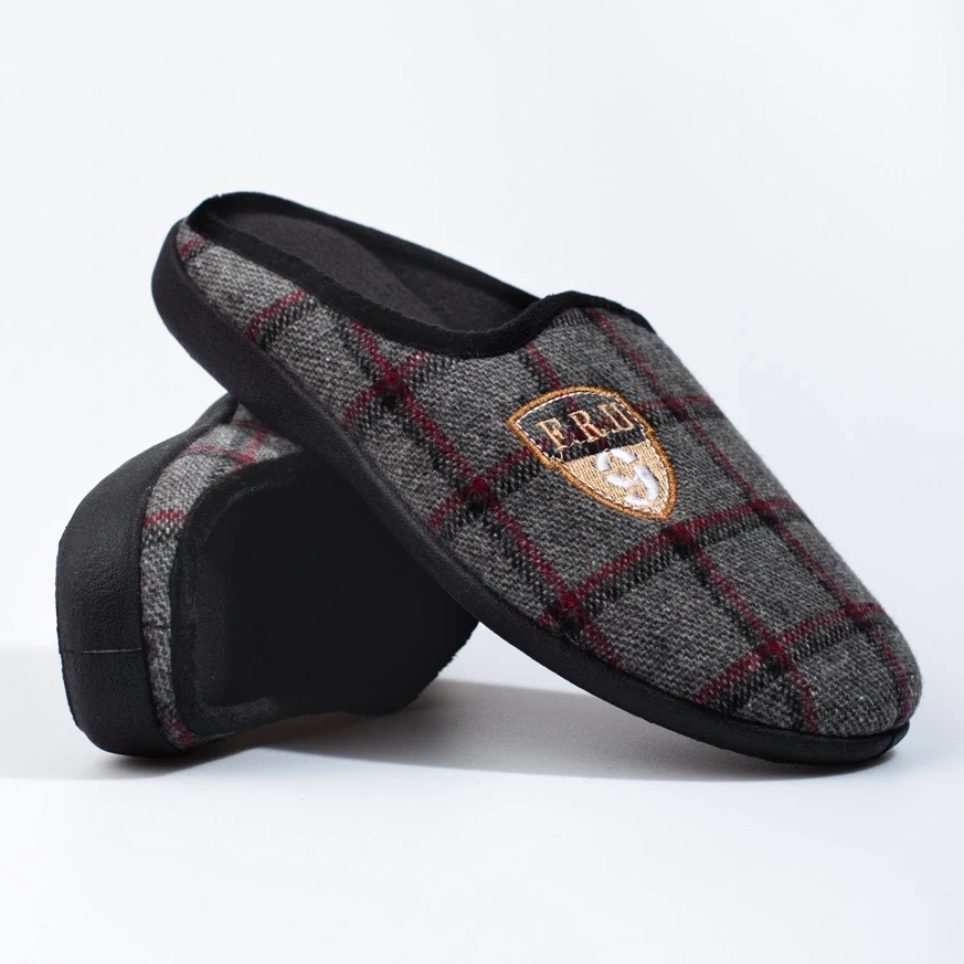 Las pantuflas grises a cuadros para hombre son zapatos cómodos para uso doméstico, pero lo suficientemente elegantes como para usarlos todos los días. Están fabricados íntegramente en material textil, lo que garantiza comodidad de uso.