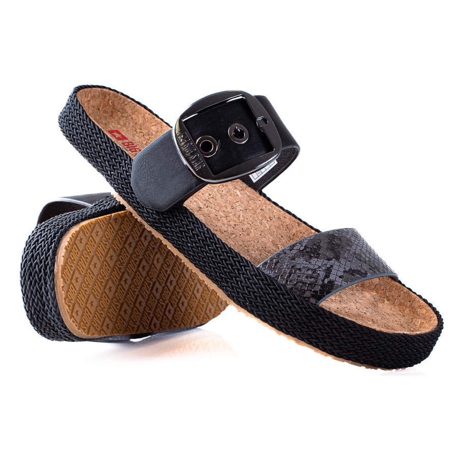 Elegantes y elegantes marcas de zapatillas para mujeres negras Big Star diseñadas para la comodidad y el estilo universal. Un diseño simple y diseñado hace que el modelo coincida perfectamente con muchas estilizaciones de verano, desde sets informales con jeans hasta vestidos y pantalones cortos.