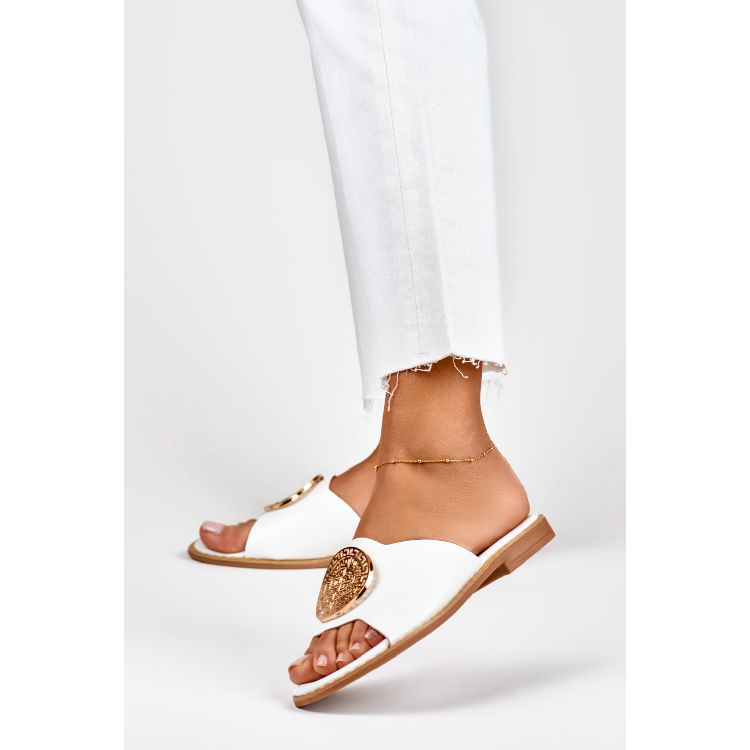 Cuida tu comodidad y estilo: elige unas chanclas de mujer blancas con decoración dorada, que serán tu aliada de moda en la temporada primavera/verano.