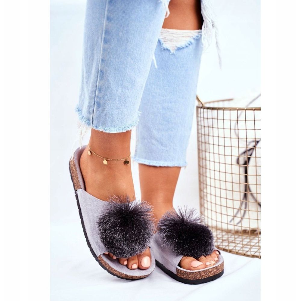 Detalles: MSMG Pantuflas de Mujer Gris Sobre Corcho con Pompón Galaxo