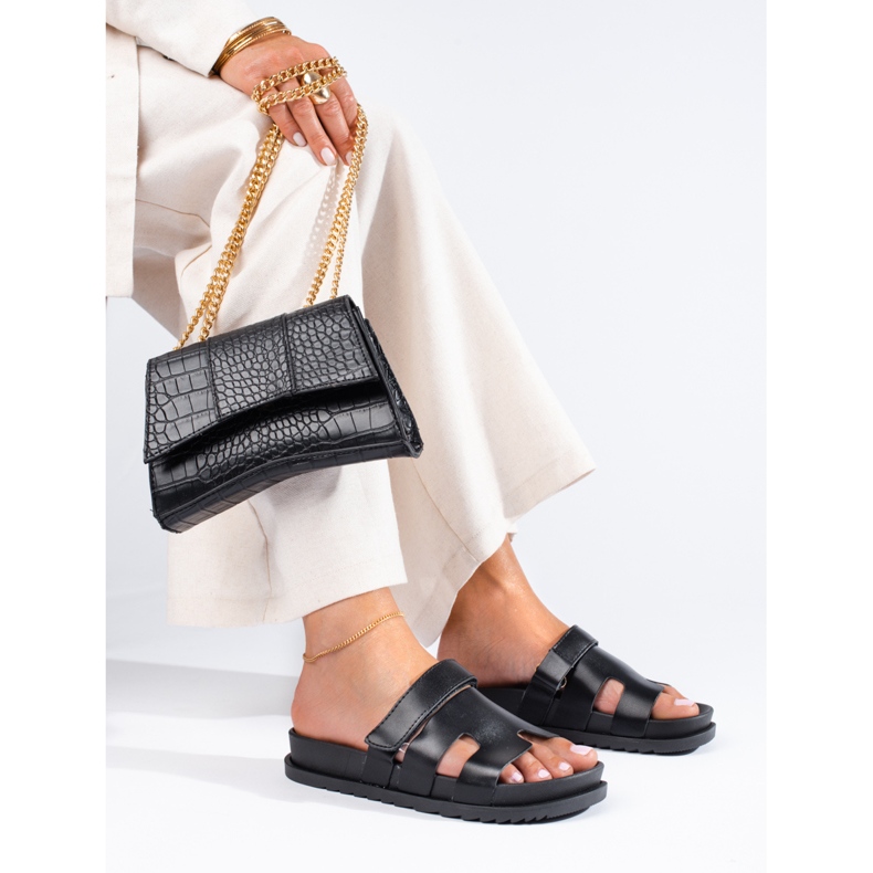 Las chanclas de mujer negras con plataforma gruesa de SHELOVET son imprescindibles para todo amante del estilo urbano e informal que valore la combinación de comodidad y diseño clásico. Este modelo encaja perfectamente en los conjuntos cotidianos y proporciona una base ideal para muchos conjuntos.