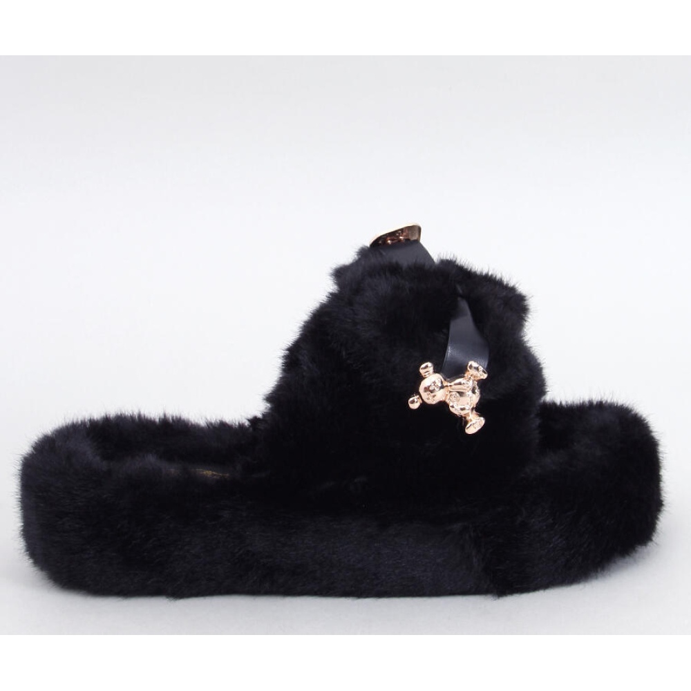 Detalles: Pantuflas de pelo con lazo y osito Burano Negro - Inello