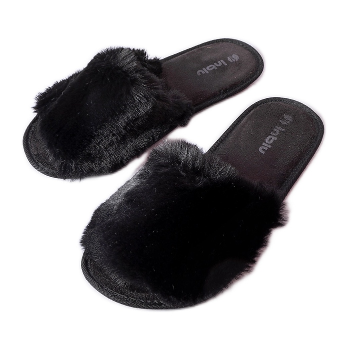 Inblu Inblu Pantuflas Giacomo negras con pelo. negro