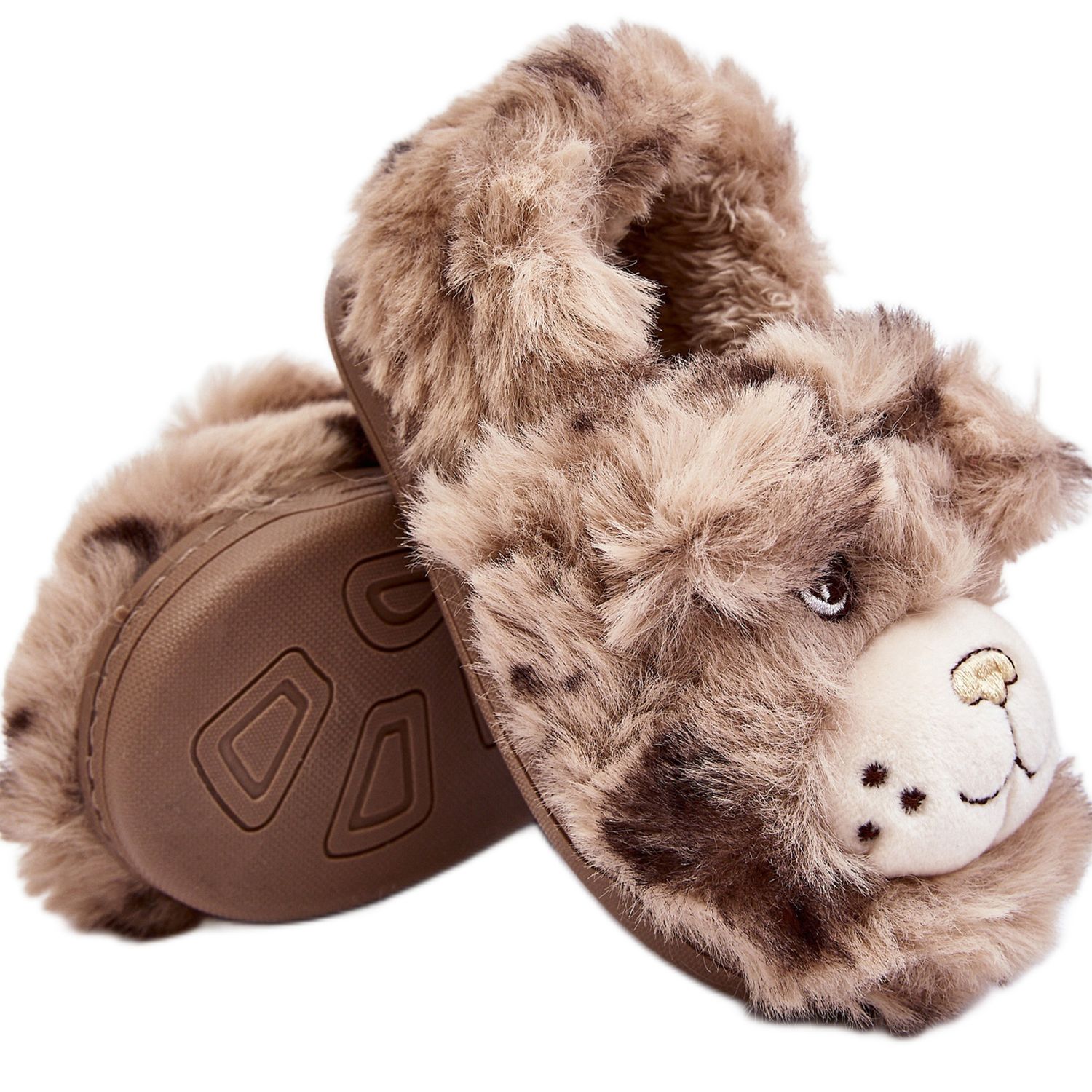 Detalles: Pantuflas infantiles de pelo con osito, beige oscuro Apolanie