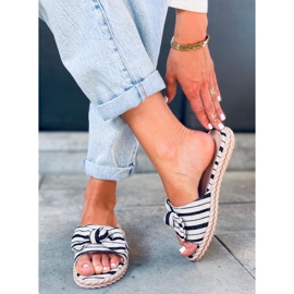 Te presentamos las pantuflas de mujer Adana Black, que son un complemento perfecto para tu guardarropa de verano. Estas elegantes chanclas con suela plana se distinguen por un bonito lazo en la parte delantera y un estampado de rayas veraniego, que las hace llamativas y añade encanto a cualquier estilismo.