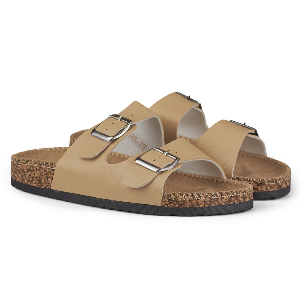 Beige cómodas zapatillas para mujeres: un modelo universal para la primavera y el verano, que combina la comodidad con un diseño elegante y moderado. Hecho de cuero ecológico de alta calidad, con un inserto de gamuza suave, ofrecen una plataforma estable de 3 cm y un resbalón cómodo con una hebilla ajustable, gracias a la cual puede igualarlos con cualquier pie.