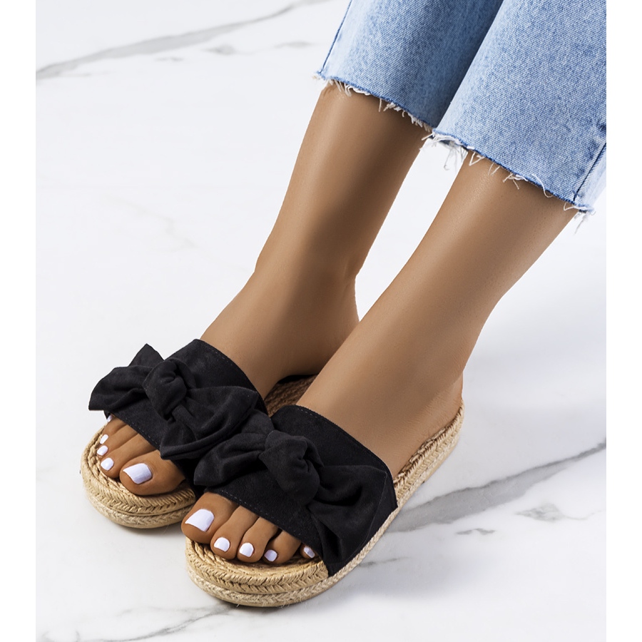 Detalles: Pantuflas negras con lazo de Madelen negro