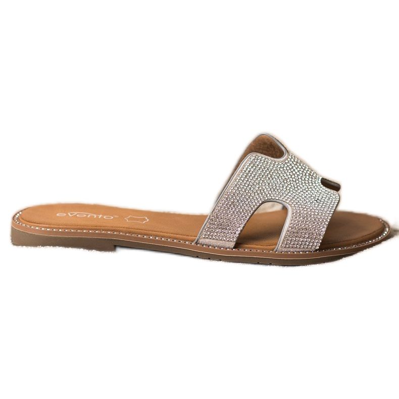 Las chanclas plateadas con cristales de Evento son una elección perfecta para las mujeres que quieren combinar estilo casual con elegancia. Estas modernas chanclas, perfectas para la primavera y el verano, cuentan con un cierre sin cordones y un talón abierto, lo que garantiza comodidad al usarlas.