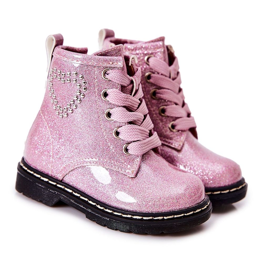 ¡Descubra las botas WT1 para niños únicas en un color rosa inusual que hará las delicias de cada pequeña fashionista! Estos botines de charol se caracterizan por un efecto brillante y un encantador corazón decorado con tachuelas, que les aporta un estilo y encanto extraordinarios. Gracias al cordón clásico se ajustan perfectamente al pie y la cremallera cosida en el lateral permite ponérselos fácil y rápido.
