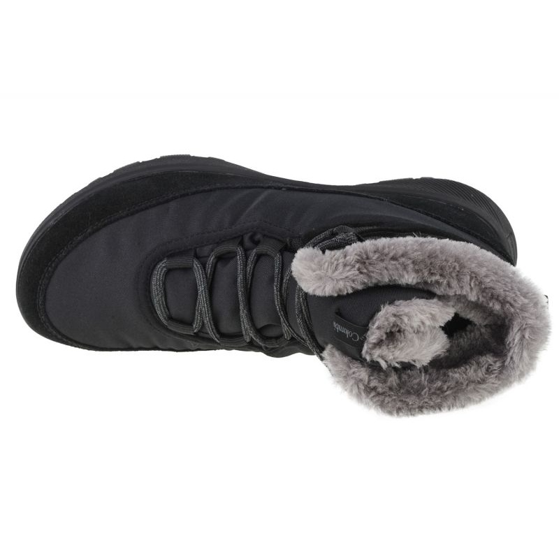 Columbia Shopeside Peak Shoes en 1950881010 - Botas de nieve para mujeres en negro, combinando estilo y funcionalidad. El corte alto y de encaje proporciona un ajuste estable para el tobillo, y el interior aislado con una piel de oveja suave garantiza la comodidad y el calor en los días más fríos. Una suela sólida y gruesa con una banda de rodadura proporciona una buena tracción en superficies resbaladizas, mientras que la parte superior de gamuza-threnental agrega elegancia y fuerza.