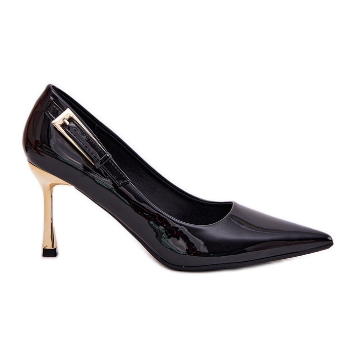 Descubra elegancia y estilo moderno gracias a nuestros tacones barnizados con una abrazadera dorada en negro. Estos zapatos de mujer únicos, hechos de cuero ecológico de alta calidad, combinan comodidad y un diseño sofisticado que atrae la atención.