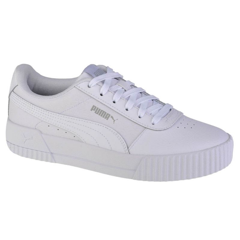 Te presentamos unas zapatillas juveniles Puma Carina L Jr 370677-19 en un clásico color blanco, perfectas para el día a día. Estos zapatos bajos con cordones combinan estilo y comodidad, lo que los convierte en la elección perfecta para las chicas activas.