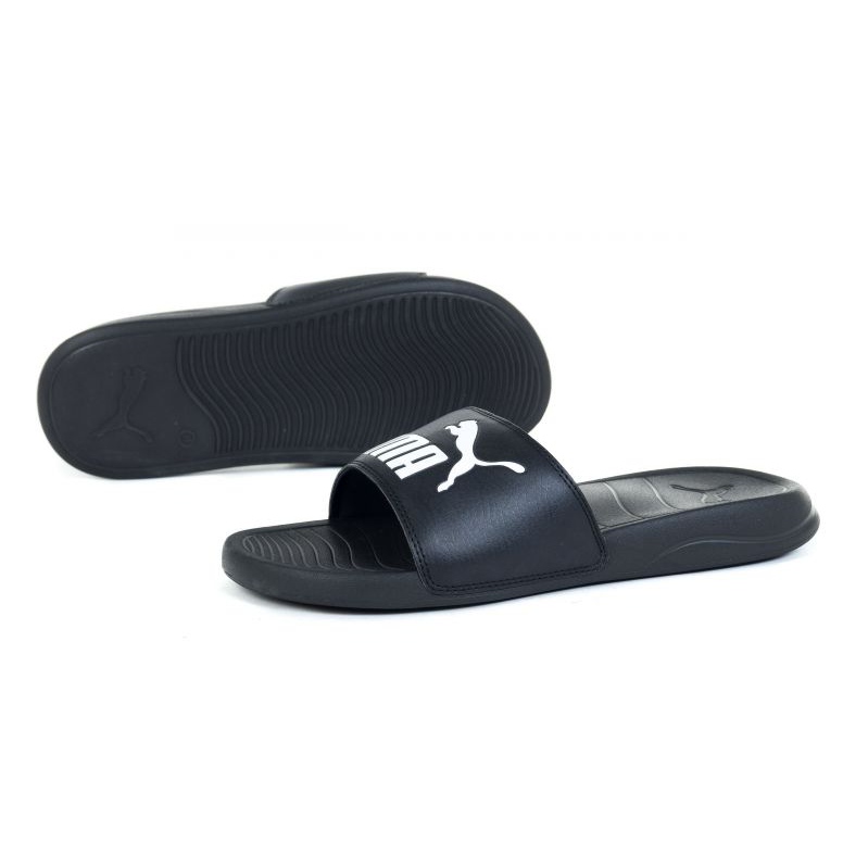 Las chanclas Puma Popcat 20 son en un clásico color negro, lo que las hace combinar perfectamente con cualquier estilismo veraniego. Con el logotipo del fabricante en la correa, el aspecto elegante se complementa con una combinación de funcionalidad y diseño moderno.