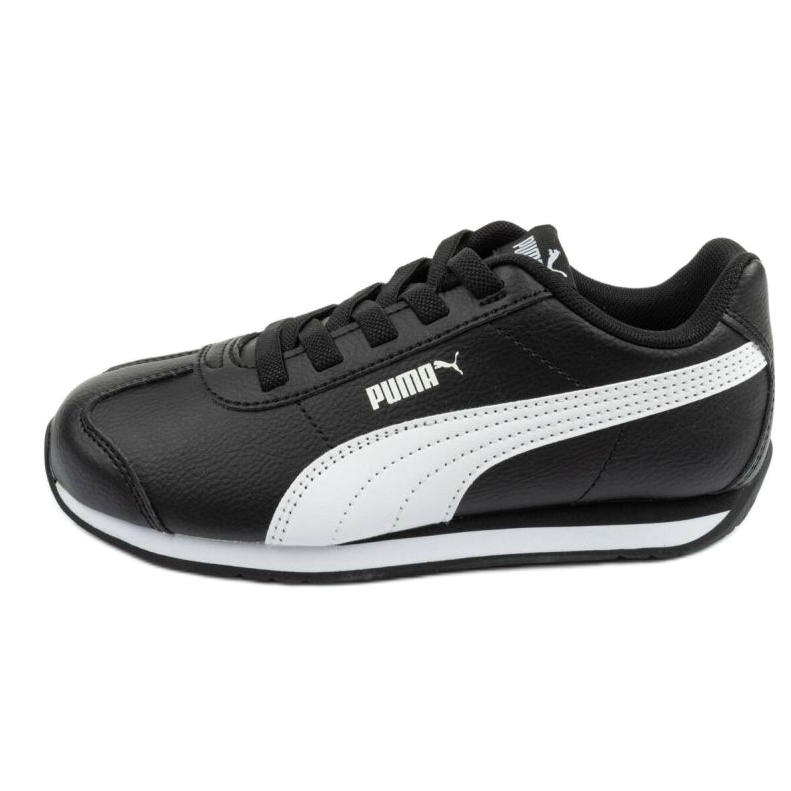 Los zapatos están disponibles en un color negro atemporal, con detalles blancos, lo que los hace mezclar perfectamente con varias estilizaciones de niños y niñas. El modelo Puma Turin 3 es una gran selección todos los días y para actividades deportivas, proporcionando a los usuarios jóvenes comodidad y apariencia de moda.