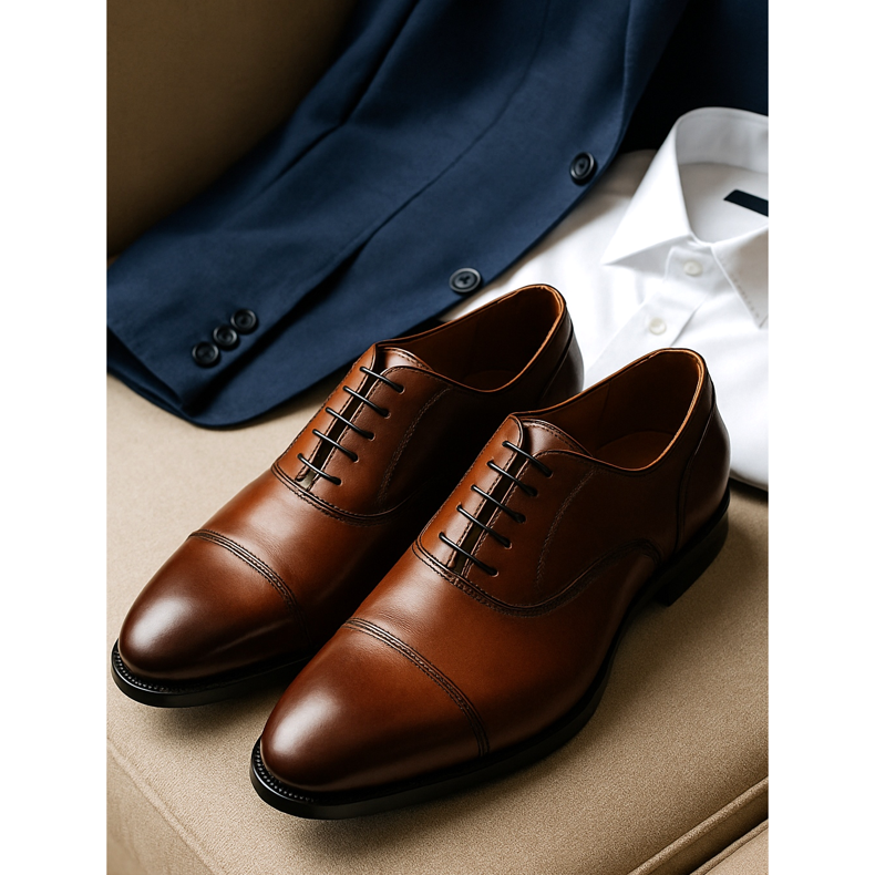 Una alternativa elegante al negro, especialmente para trajes en tonos azules, grises y beige. Los zapatos marrones añaden calidez y lucen menos formales que los negros, lo que funciona bien para bodas al aire libre.