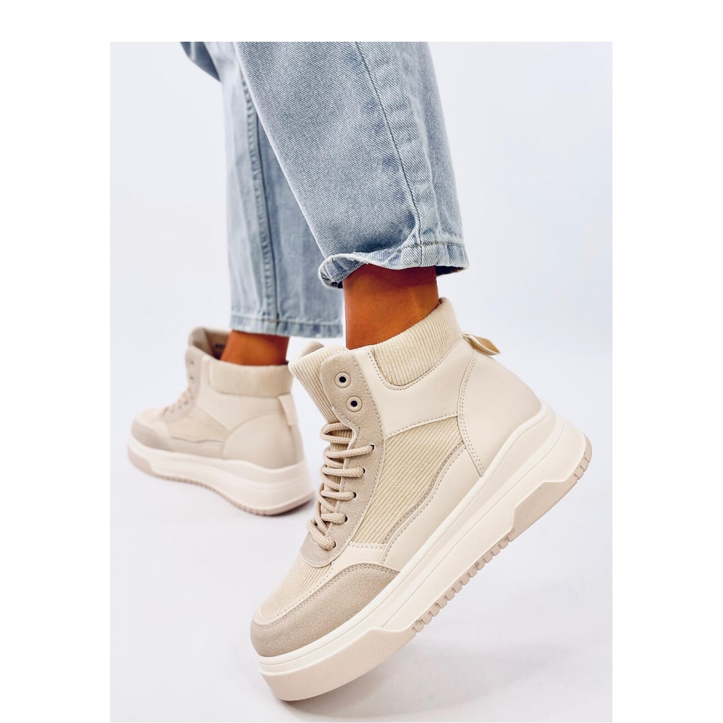 Zapatillas altas para mujer. El modelo se caracteriza por un corte clásico y deportivo confeccionado en una combinación de tejido de pana y piel ecológica. Con estos zapatos lucirás un look moderno y original :) El interior de los zapatos está forrado de tela. ¿Material exterior? Piel ecológica + ante/pana ecológica.
