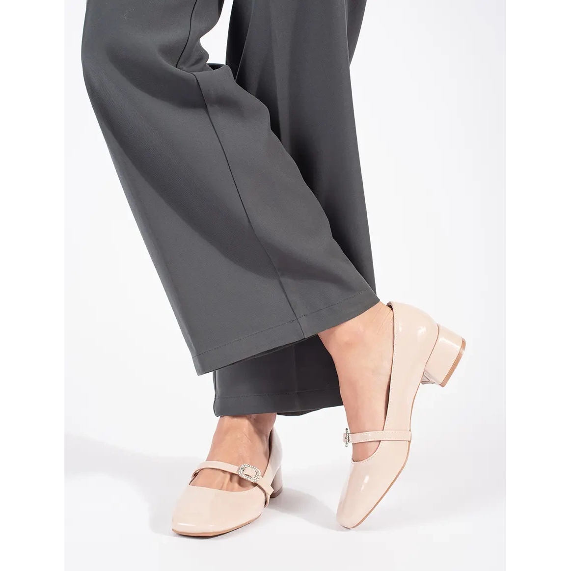 Se trata de zapatos de tacón de charol beige que no solo enfatizan la elegancia, sino que también brindan comodidad para el uso diario. Hechos de cuero ecológico de alta calidad, estos hermosos zapatos son el complemento perfecto para cualquier atuendo. La puntera redonda les da un carácter clásico y sutil, y el cierre sin cordones hace que calzarlos sea rápido y cómodo.