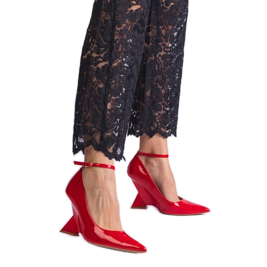 Descubra la elegancia y el estilo en verano con bombas rojas barnizadas en cuña, modelo E400 de una marca acreditada. Estos zapatos únicos son una gran opción para cada mujer de moda que quiere sentirse especial en días cálidos.