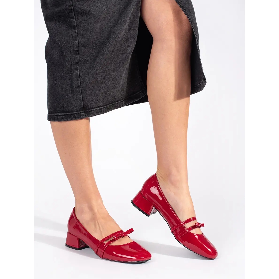 Goodin Goodin Salón de charol rojo con tacón bajo.