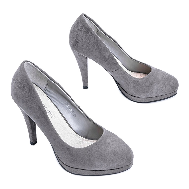 Presentamos unos salones de plataforma grises extremadamente elegantes, modelo Chana. Estos zapatos únicos, confeccionados en ante ecológico de agradable tacto en un tono gris atemporal, serán el complemento perfecto para cualquier estilismo, tanto elegante como informal. El corte clásico y la punta almendrada hacen que estos zapatos sean extremadamente universales y adecuados para diversas ocasiones.