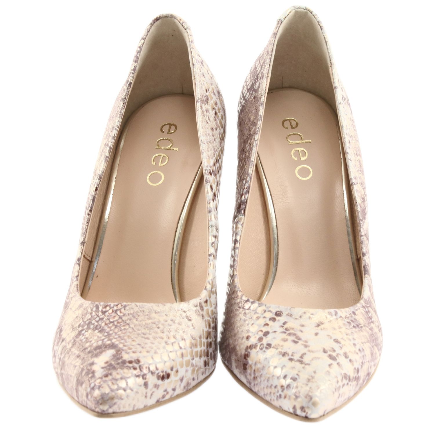 Los salones de mujer Edeo 3313 son la elección perfecta para las mujeres que valoran la elegancia y la comodidad. Confeccionados en cuero natural con un moderno estampado de serpiente en tonos beige y dorado, tienen un aspecto extremadamente elegante y añaden elegancia a cualquier estilo.