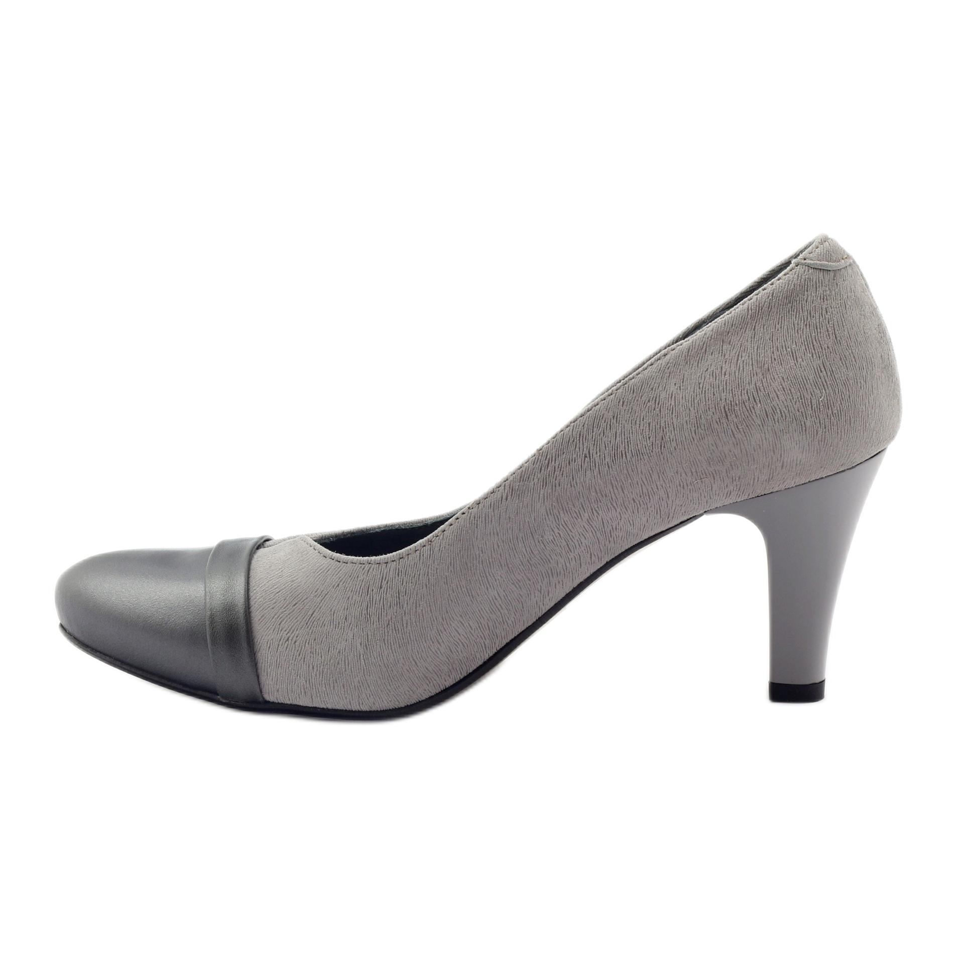 Los zapatos de salón clásicos de la marca polaca Espinto en un color gris universal son una propuesta que quedará bien tanto en el trabajo como en las celebraciones. Confeccionadas íntegramente en piel natural con un delicado acabado en relieve, combinan elegancia con el confort diario.