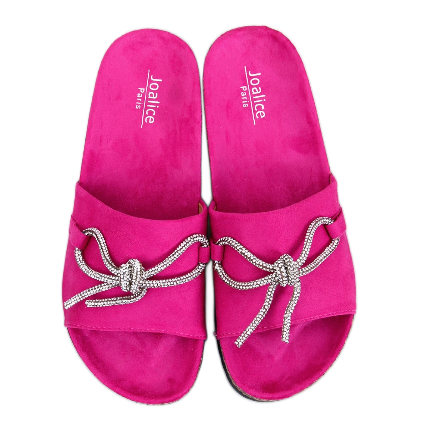 Descubra la comodidad y el estilo únicos con las aletas de corcho de sandalias con circones de dieta en el color fucsia de la marca inello. Las zapatillas de estas mujeres son la combinación perfecta de diseño de moda y practicidad. El cinturón de gamuza, decorado con un elegante arco con piedras brillantes, le da a los zapatos un encanto y elegancia únicos.