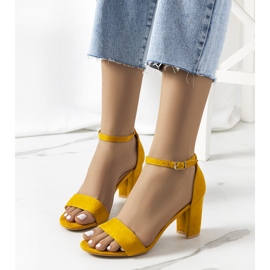 Sandalias amarillas en el poste de Karella: un acento nuevo para las estilizaciones de verano
