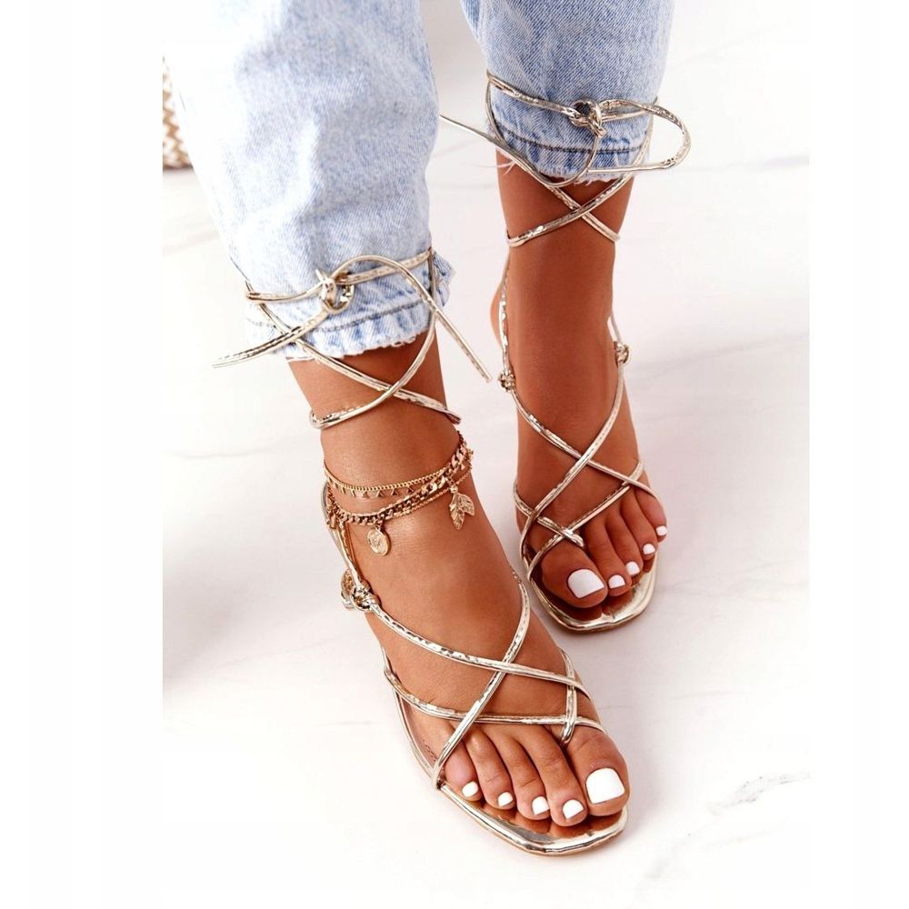 PS1 PS1 Sandalias atadas en un tacón alto con punta cuadrada Golden Runway dorado