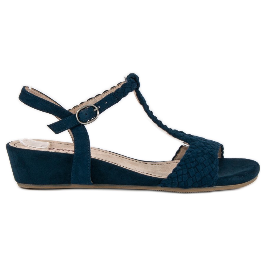 Descubre la elegancia y la comodidad en cualquier momento con las sandalias de cuña Corina en un bonito tono azul/azul marino. Estos elegantes zapatos son una opción perfecta para las mujeres que quieren sentirse cómodas y atractivas al mismo tiempo. Las sandalias están cuidadosamente hechas de gamuza ecológica de alta calidad, lo que garantiza no solo durabilidad sino también una apariencia estética.
