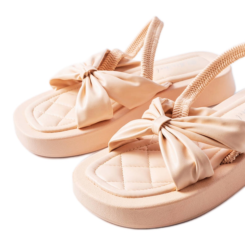 El producto descrito a continuación es una sandalia de mujer. Son unas sandalias con plataforma de corte clásico. Los colores de los zapatos incluyen varios tonos de beige, que el fabricante refleja en el nombre del color: beige desnudo. La altura del tacón es de 3 cm. Un encanto adicional de este modelo es un lazo decorativo.