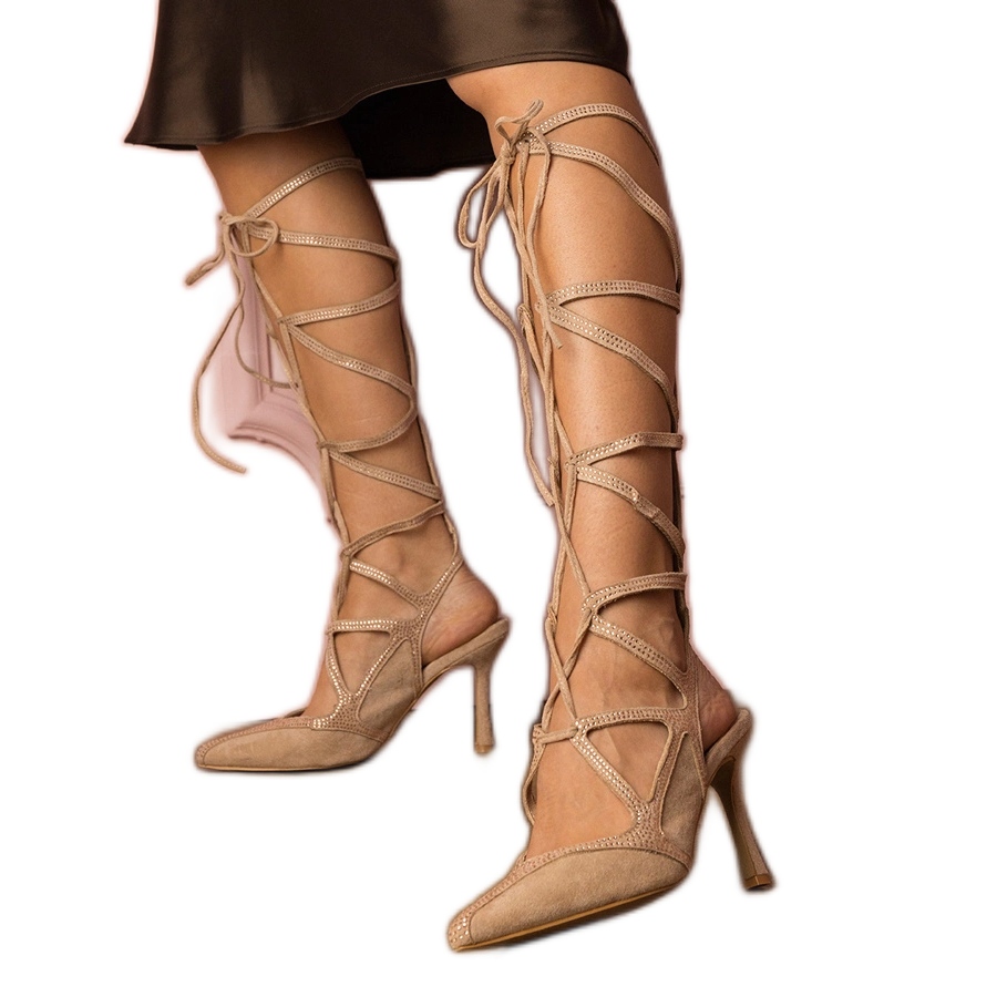 Inna marka Sandalias beige en un tacón alto atado con circones