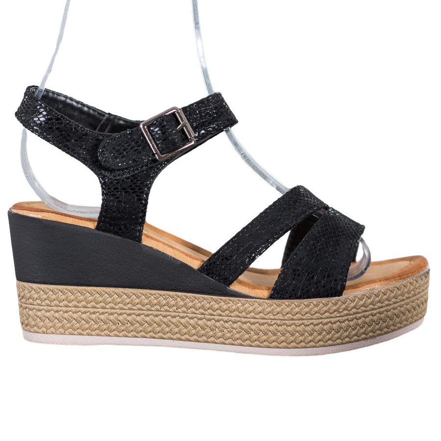 Descubre la elegancia y la comodidad con las sandalias Sea Elves en color negro. Estos zapatos de mujer únicos combinan un moderno motivo animal con un corte clásico perfecto para diversas ocasiones. Fabricadas con un material de alta calidad que imita el cuero, las sandalias no solo llaman la atención, sino que también garantizan comodidad al usarlas.