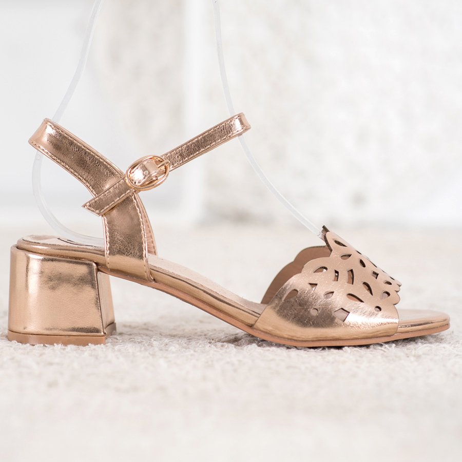 Presentamos sandalias únicas de cuero ecológico "Kylie" con tacón en un hermoso tono dorado amarillo. Estos elegantes zapatos son una opción perfecta tanto para ocasiones especiales como para salidas cotidianas, añadiendo un encanto único a cada estilismo.