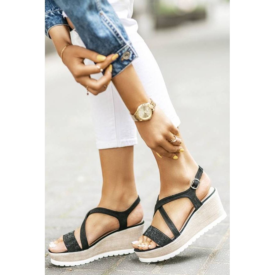 Las sandalias de cuña negras de Sadie son la elección perfecta para las mujeres que valoran tanto el estilo como la comodidad. Estas elegantes sandalias de plataforma se distinguen por una tira delantera recubierta de lentejuelas negras, que les dan un encanto único y las convierten en un complemento perfecto para cualquier estilismo veraniego.