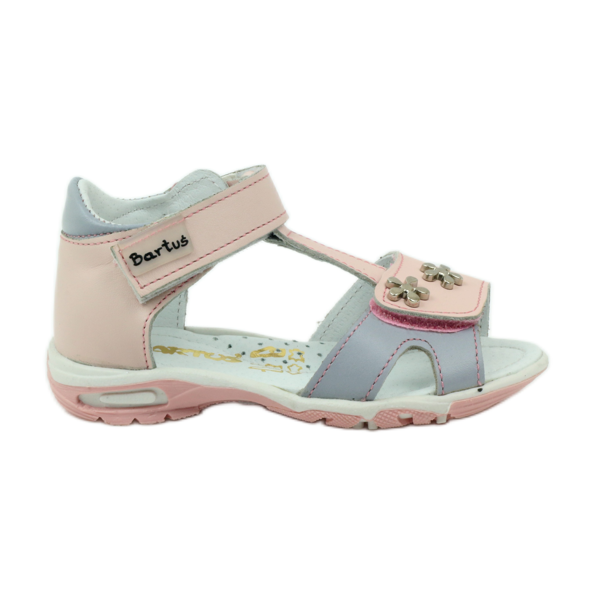 El fabricante Bartuś, conocido por su atención a la calidad y la salud de los más pequeños, se encargó de que estas sandalias tuvieran la marca "Pie Saludable", que confirma que son adecuadas para los pies en desarrollo de los niños. Disponibles en un bonito color rosa y gris con flores decorativas de metal, seguramente atraerán a todas las niñas.