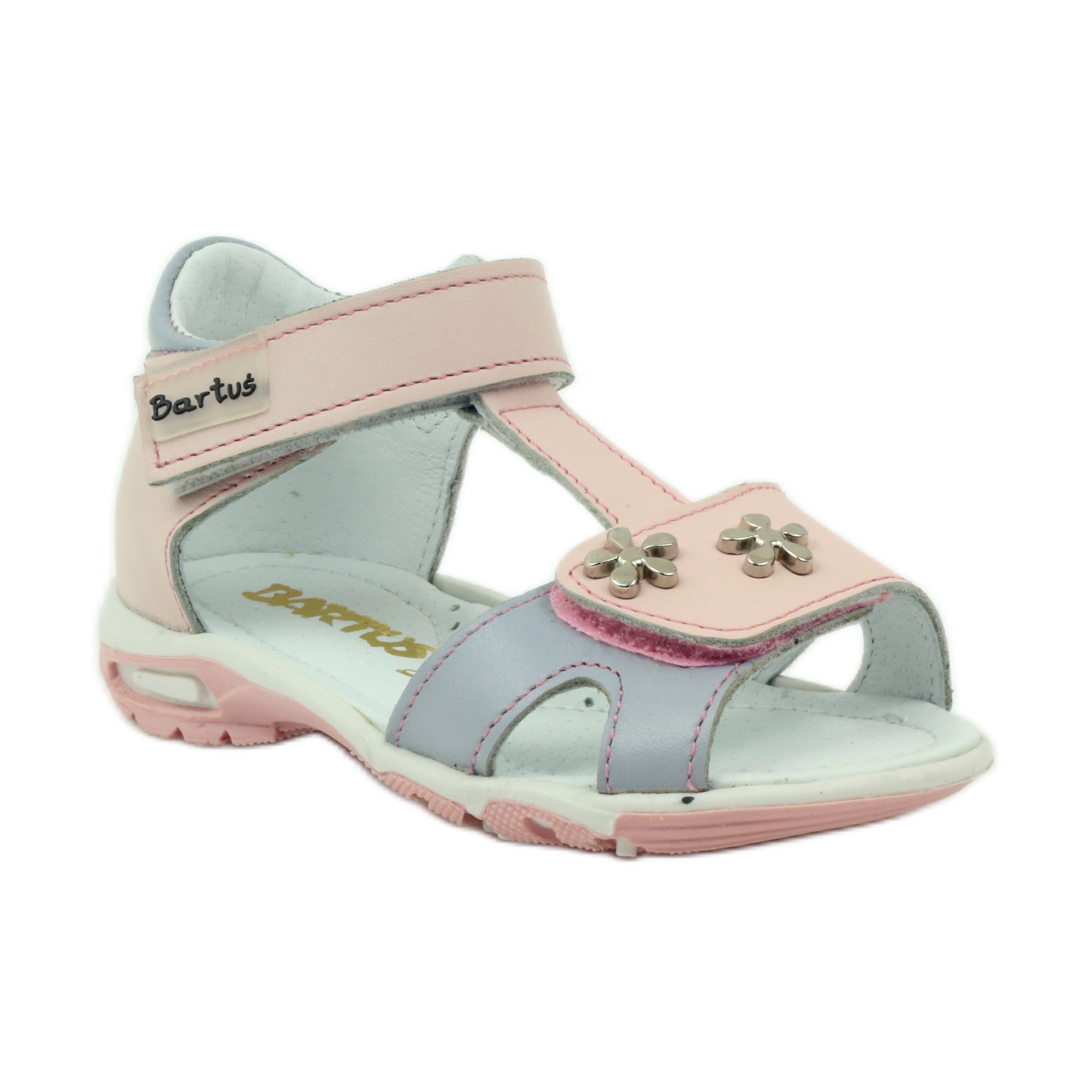 Sandalias de niña modelo Bartuś. 138 en rosa y gris es la elección perfecta para los pequeños exploradores. Fabricados con cuero natural de alta calidad, garantizan no sólo una apariencia atractiva, sino también comodidad y salud para los pies de los niños.