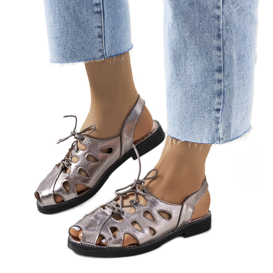 Las elegantes sandalias VLL (modelo B27-1) en un tono metálico de piterio es una combinación de una forma clásica con un acabado moderno. Hecho de cuero ecológico de alta calidad tanto fuera como adentro, proporcionan conveniencia de uso y brillo estético y sutil. Los detalles de Openwork y la encuadernación le permiten combinar perfectamente la parte superior con el pie, y un tacón plano de 2.5 cm garantiza la estabilidad durante todo el día.