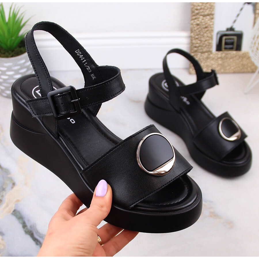 Las sandalias de cuña de cuero para mujer de Filippo son elegancia y comodidad en uno. El modelo DS4411 en negro clásico es una propuesta para las mujeres que valoran el diseño universal y los materiales naturales de alta calidad.