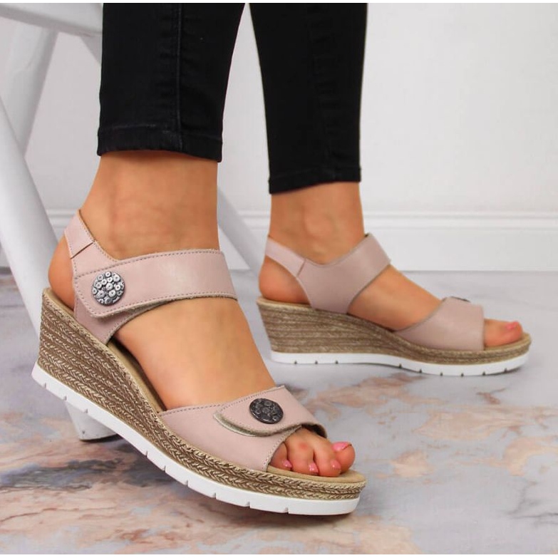 Inna marka Sandalias de cuero con cuña Rieker W 619B9-31 rosa rosado