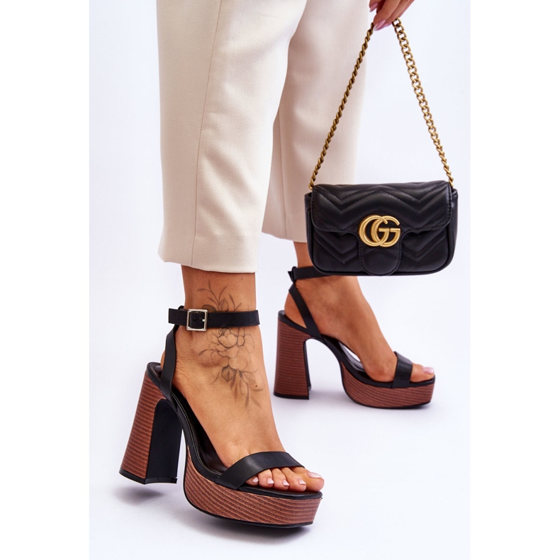 Las elegantes y expresivas sandalias de mujeres Marina hecha de cuero ecológico es una propuesta ideal para la temporada de primavera/verano. Ubicado en un tacón masivo de 11.5 cm de altura con una plataforma de 3 cm, combinan un aspecto de moda con la comodidad de una estructura estable. El modelo tiene una nariz abierta y cuadrada y un talón abierto, está sujeto con un cinturón ajustable con una hebilla.