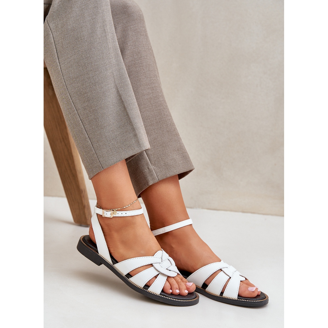Detalles: Sandalias de cuero para mujeres con tacones planos Zazoo 3688 White blanco