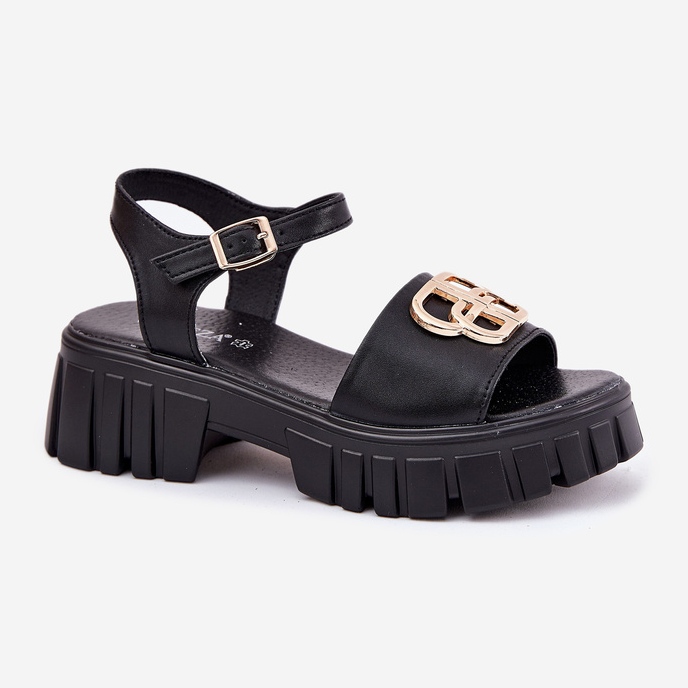 Su elemento característico es el detalle dorado en el frente, que agrega estilo y hace que el modelo se destaque de los demás. Las sandalias sujetas con una hebilla de cinturón ajustable permiten un ajuste preciso al pie, lo que garantiza la estabilidad y la comodidad. Con un tacón plano de 5 cm de altura y una plataforma de 3 cm, estas sandalias se deleitan no solo con el estilo, sino también con la funcionalidad.