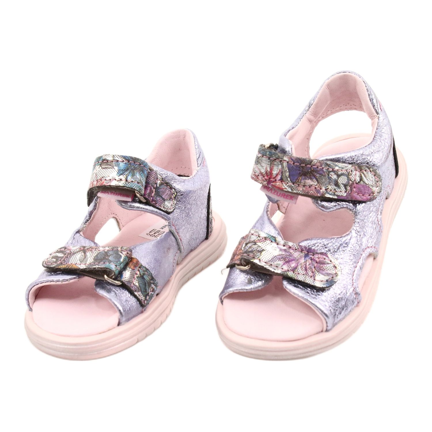Sandalias de cuero para niñas Mazurek 1314 Amethyst Perła púrpura plata