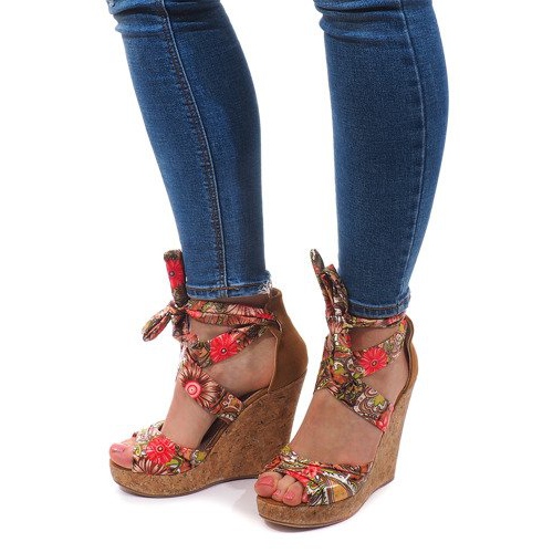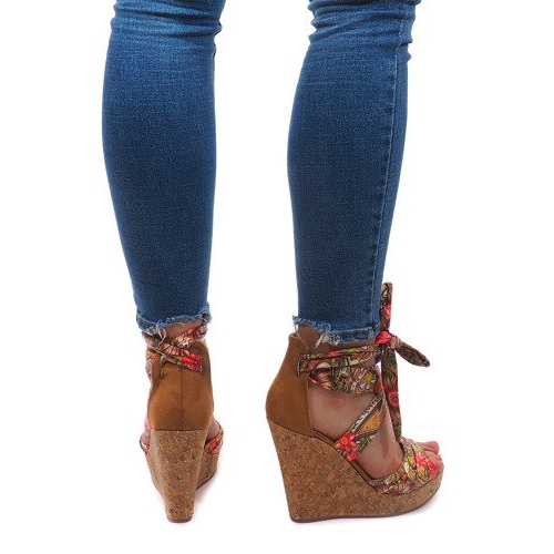 Inna marka Sandalias de cuña atadas 3686 Camel marrón